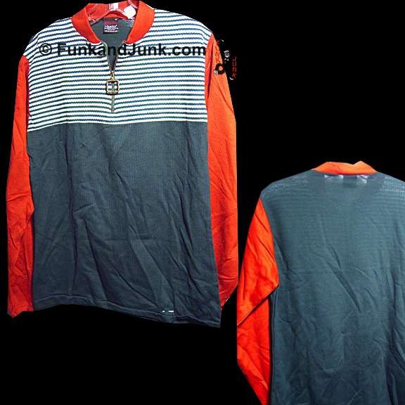 Campus Expressions Green with White and Green Striped Top and Red Sleeves and Straight Collar Long Sleeve Deadstock Shirt