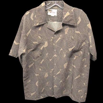 Campus Pro Action Brown with Squared Swirl Geos with Tan Accents Early 50’s Short Sleeve Heavy Rayon?