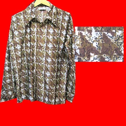 / Go Young Triangular Brown shapes with White background and various slash marks long sleeve disco shirt