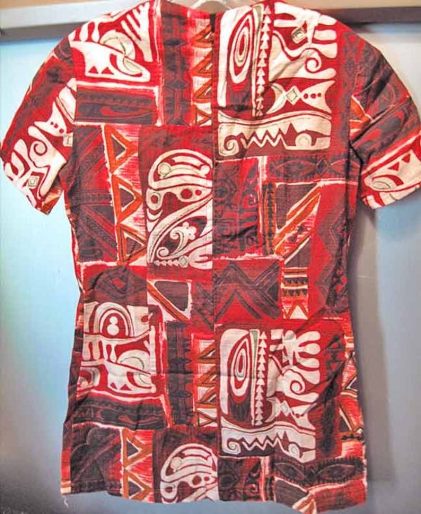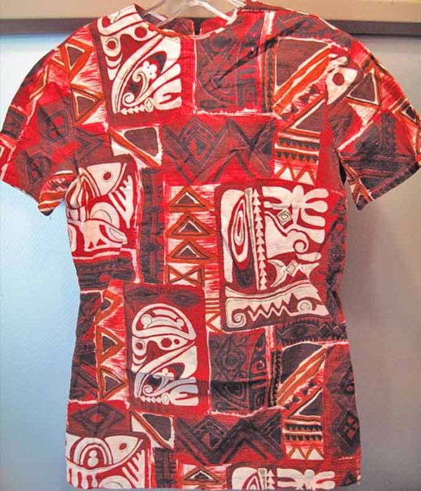 Red Tapa Print Barkcloth Women’s Hawaiian Top