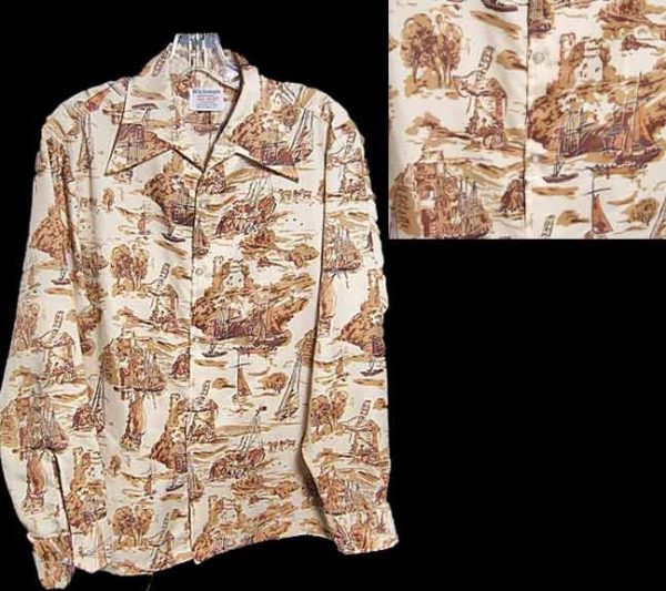 Richman Brothers Dura Press Creme with Dutch Ships Windmills & Castles Long Sleeve Shirt