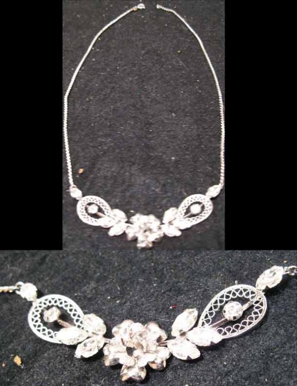 Star Art Necklace Sterling Silver and Rhinestone with Rose Center and Reticulated design