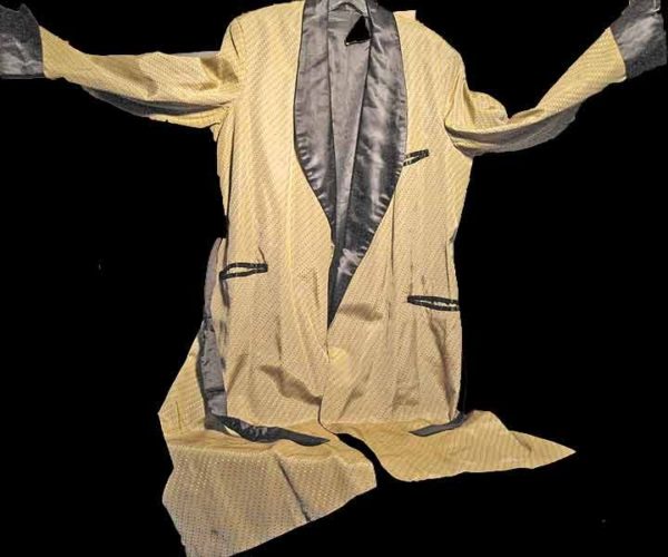 One size fits most, 46″ bust/chest with lapels slightly overlapped to indicate largest tied size. Absolutely fantastic Playboy pattern.